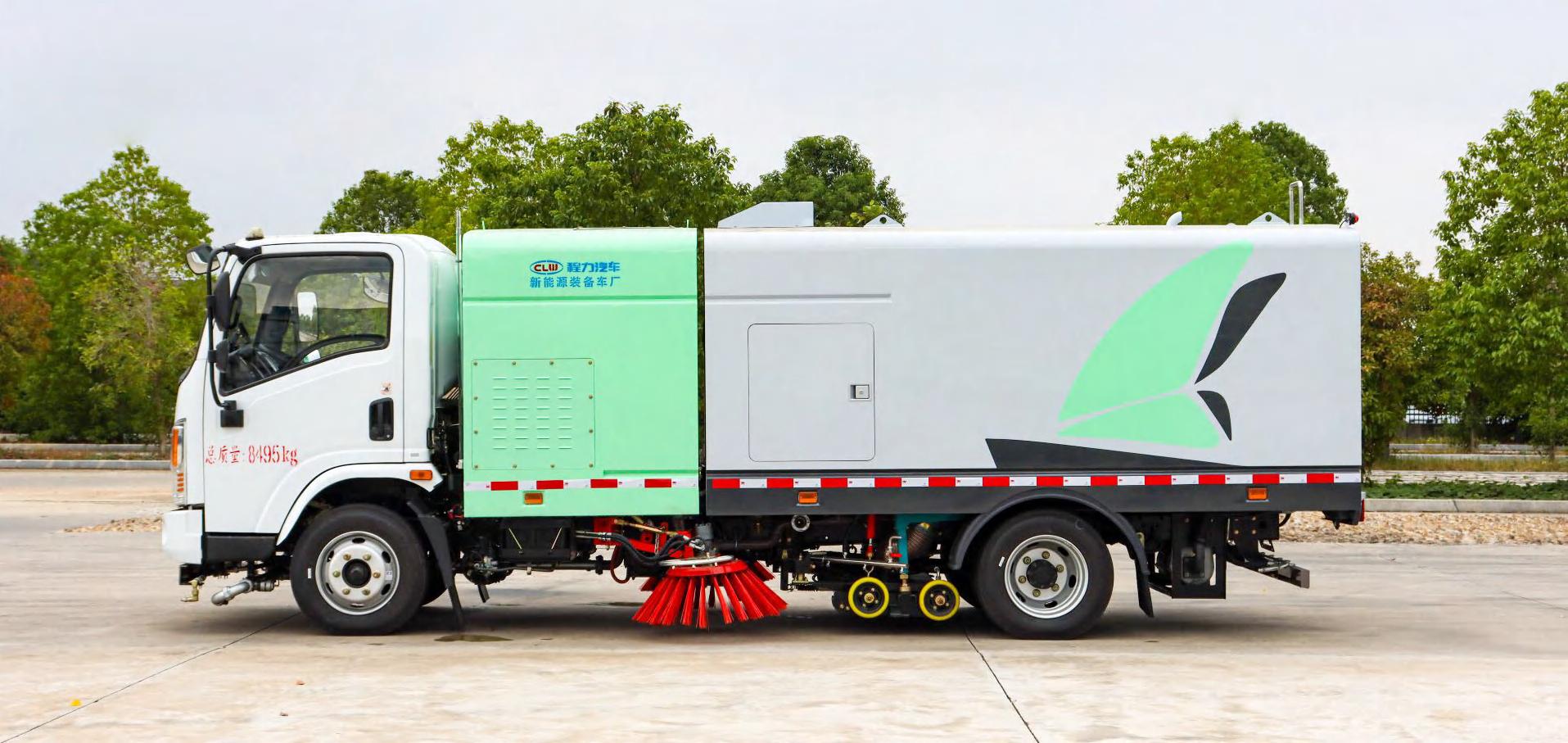 四、其他說明: 程力汽車股份有限公司環(huán)衛(wèi)車系列東風華神純電動洗掃車是我公司自行設(shè)計開發(fā)、具有自主知識產(chǎn)權(quán)、 國際領(lǐng)先技術(shù)水平的新一代路面、路沿清洗、清掃及噴霧降塵的專用設(shè)備。該款洗掃車結(jié)合了掃路車及高壓 清洗車的功能特點,并解決了吸塵車無法在城市道路上清洗路沿的短板,在作業(yè)時利用掃刷將地面垃圾掃向 車內(nèi)側(cè)。