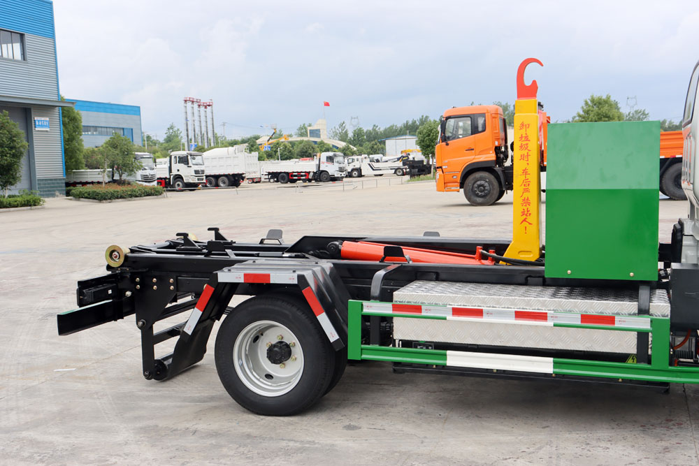 四、其他說明: 東風華神純電動車廂可卸式垃圾車,是在純電動二類底盤的基礎上,加裝垃圾箱勾臂、液壓系統(tǒng),由機械、液壓(氣路)、電器三部分合為一體的專用垃圾轉運車。